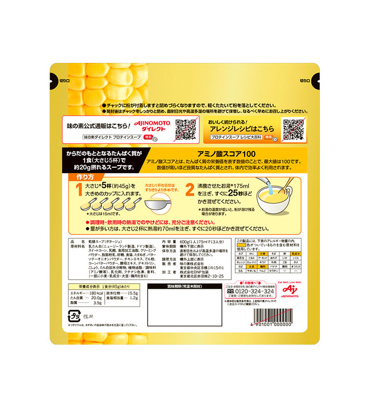「味の素KK プロテインスープ」コーンクリーム 600g