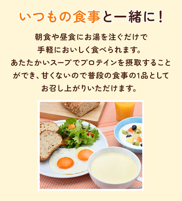 1食でたんぱく質20gを摂れる、甘さ控えめなスープです。